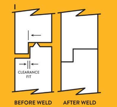 溝槽縫規劃,上下件可自定位,具有高強度、密封性好的特色,且内外側(cè)無溢料。缺點(diǎn)是要求必定的壁厚。